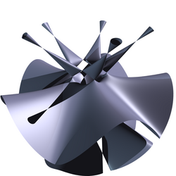 This Togliatti surface is an algebraic surface of degree five. The picture represents a portion of its real locus.