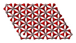 The most common form of crystalline aluminium oxide is known as corundum, which is the thermodynamically stable form. The oxygen ions form a nearly hexagonal close-packed structure with the aluminium ions filling two-thirds of the octahedral interstices. Each Al3+ center is octahedral. In terms of its crystallography, corundum adopts a trigonal Bravais lattice with a space group of R3c (number 167 in the International Tables). The primitive cell contains two formula units of aluminium oxide.