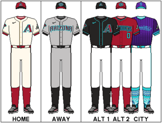 Before the 2023 season, the Diamondbacks promoted the alternate white uniform with teal accents to its primary home uniform and retired the previous Sedona Red white uniform. This is due to a new Nike rule that limits teams to four regular uniforms plus the "City Connect" uniform.