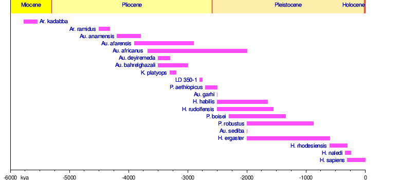 - KT-12/H1, an A. bahrelghazali mandibular fragment, discovered 1995 in Sahara, Chad
