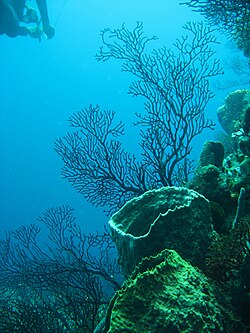 The Caribbean is the home of about 9% of the world's coral reefs, covering about 50,000 km2 (19,000 sq mi), most of which are located off the Caribbean islands and the Central American coast. Among them, the Belize Barrier Reef stands out, with an area of 963 km2 (372 sq mi), which was declared a World Heritage Site in 1996. It forms part of the Great Mayan Reef (also known as the MBRS) and, being more than 1,000 km (600 mi) in length, is the world's second longest. It runs along the Caribbean coasts of Mexico, Belize, Guatemala and Honduras.