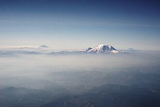 ![]() The Cascades in Washington, with Mount Rainier, the range's highest mountain, standing at 14,411 ft (4,392 m). Seen in the background (left to right) are Mount Adams, Mount Hood, and Mount St. Helens. | |