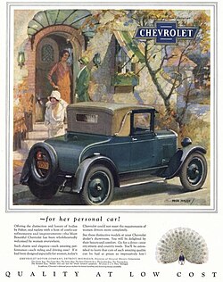 Louis Chevrolet (1878–1941), Arthur Chevrolet (1884–1946) and ousted General Motors founder William C. Durant (1861–1947) started the company on November 3, 1911 as the Chevrolet Motor Car Company. Durant used the Chevrolet Motor Car Company to acquire a controlling stake in General Motors with a reverse merger occurring on May 2, 1918, and propelled himself back to the GM presidency. After Durant's second ousting in 1919, Alfred Sloan, with his maxim "a car for every purse and purpose", picked the Chevrolet brand to become the volume leader in the General Motors family, selling mainstream vehicles to compete with Henry Ford's Model T in 1919 and overtaking Ford as the best-selling car in the United States by 1929 with the Chevrolet International.
