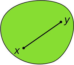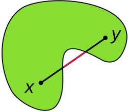 Let S be a vector space or an affine space over the real numbers, or, more generally, over some ordered field (this includes Euclidean spaces, which are affine spaces). A subset C of S is convex if, for all x and y in C, the line segment connecting x and y is included in C.