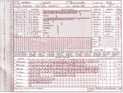 • For each ball, who bowled it and how many runs were scored from it, whether by the batsman with his bat ('off the bat') or byes.
