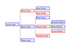 While family trees are depicted as trees, family relations do not in general form a tree in the strict sense used in graph theory, since distant relatives can mate. Therefore, a person can have a common ancestor on both their mother's and father's side. However, because a parent must be born before their child, an individual cannot be their own ancestor, and thus there are no loops. In this regard, ancestry forms a directed acyclic graph. Nevertheless, graphs depicting matrilineal descent (mother-daughter relationships) and patrilineal descent (father-son relationships) do form trees. Assuming no common ancestor, an ancestry chart is a perfect binary tree, as each person has exactly one mother and one father; these thus have a regular structure. A Descendant chart, on the other hand, does not, in general, have a regular structure, as a person can have any number of children or none at all.