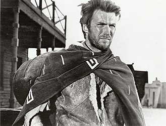 Western films are those "set in the American West that embod[y] the spirit, the struggle and the demise of the new frontier". Pictured: Clint Eastwood in the Spaghetti Western film A Fistful of Dollars (1964).