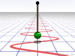 A pendulum with a period of 2.8 s and a frequency of 0.36 Hz