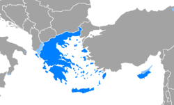 ![]() Areas where Modern Greek is spoken (Dark blue represents areas where it is the official language.) | |