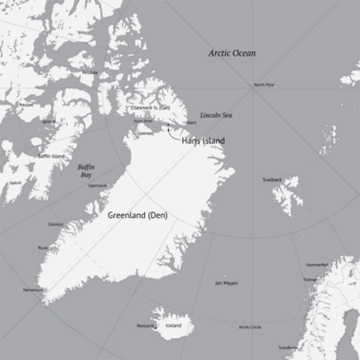 ![]() Location of Hans Island, between Greenland and Ellesmere Island | |
