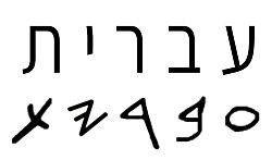 The word Ivrit ("Hebrew") written in the modern Hebrew script (top) and in the Paleo-Hebrew alphabet (bottom)