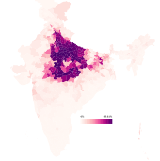 ![]() Distribution of L1 self-reported speakers of Hindi in India as per the 2011 Census | |
