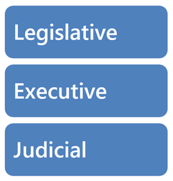 The separation of powers: legislature, executive (government) and judiciary.