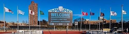 | Columbia | Robert K. Kraft Field at Lawrence A. Wien Stadium | 17,000 | 1984 | Levien Gymnasium | 3,408 | 1974 | Robertson Field at Satow Stadium | 1,500 | 1923 | Non-hockey school | Commisso Soccer Stadium | 3,500 | 1985 | ||