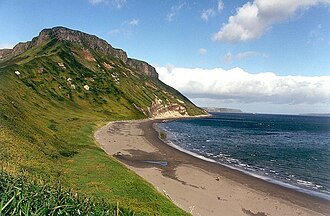 ![]() A coastline along one of the Kuril Islands | |