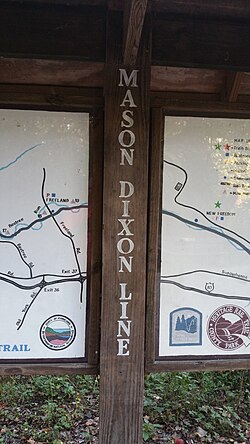 The Mason–Dixon line, where the Torrey C. Brown Rail Trail becomes the York County Heritage Trail near New Freedom, Pennsylvania