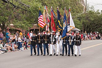 A United States Armed Forces Joint-Service Color Guard. This color guard consists of personnel from 5 of the 6 military branches of the United States Armed Forces (Army, Marines, Air Force, Navy, and Coast Guard).
