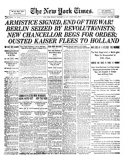 Front page of the newspaper The New York Times on Armistice Day, 1918