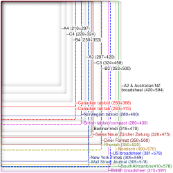 - Broadsheet 749 mm × 597 mm (29.5 in × 23.5 in) (1.255 aspect ratio)
