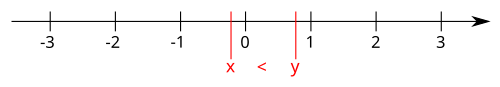 The ordering on the number line: Greater elements are in direction of the arrow.