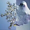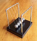 Phenomena and processes of physics' various domains, clockwise from the upper left : a Newton's cradle (classical mechanics), entropic changes in a snowflake (thermodynamics), a Chladni figure (waves, oscillations & acoustics), the aurora borealis (geophysics & electromagnetism), an insect floating across a pond (fluid mechanics & biophysics), gravitational lensing (astrophysics, optics & relativity), the double-slit experiment (quantum mechanics), and a Feynman diagram of beta decay (nuclear physics & particle physics).