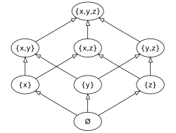 ![]() The elements of the power set of {x, y, z} ordered with respect to inclusion. | |