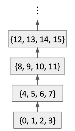 x R y defined by x//4≤y//4 is a preorder on the natural numbers. It corresponds to the equivalence relation x E y defined by x//4=y//4. The set of equivalence classes is partially ordered, and thus can be shown as a Hasse diagram (depicted).