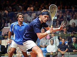 James Willstrop and Karim Darwish playing squash.
