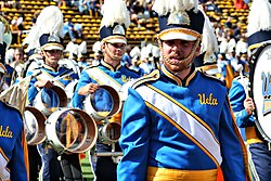 The UCLA marching band dressed in the school's "True Blue" and gold colors in 2010