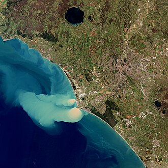 River Tiber discharging sediment into the sea