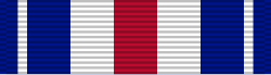 The Silver Star Medal is a gold five-pointed star, 1+1⁄2 inches (38 mm) in circumscribing diameter with a laurel wreath encircling rays from the center and a 3⁄16 inch (4.8 mm) diameter silver star superimposed in the center. The pendant is suspended from a rectangular shaped metal loop with rounded corners. The reverse has the inscription FOR GALLANTRY IN ACTION. The ribbon is 1+3⁄8 inches (35 mm) wide and consists of the following stripes: 7⁄32 inch (5.6 mm) Old Glory red (center stripe); proceeding outward in pairs 7⁄32 inch (5.6 mm) white; 7⁄32 inch (5.6 mm) ultramarine blue; 3⁄64 inch (1.2 mm) white; and 3⁄32 inch (2.4 mm) ultramarine blue.