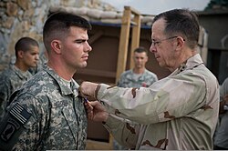 Army Captain Gregory Ambrosia receiving the Silver Star from Navy Admiral Michael Mullen, Chairman of the Joint Chiefs of Staff