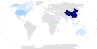 • Taiwan (de facto, as Taiwanese Mandarin)