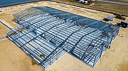 Steel frame is a building technique with a "skeleton frame" of vertical steel columns and horizontal I-beams, constructed in a rectangular grid to support the floors, roof and walls of a building which are all attached to the frame. The development of this technique made the construction of the skyscraper possible. Steel frame has displaced its predecessor, the iron frame, in the early 20th century.