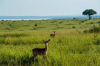 ![]() Throughout the Sudan region's savanna grasslands, kob are found migrating along freshwater bodies | |