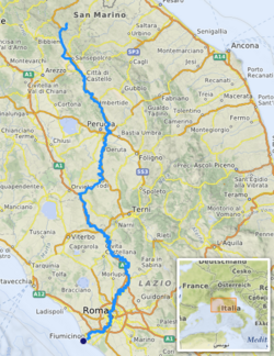 The river marked the boundary between the lands of the Etruscans to the west, the Sabines to the east and the Latins to the south. Benito Mussolini, born in Romagna, adjusted the boundary between Tuscany and Emilia-Romagna, so that the springs of the Tiber would lie in Romagna.