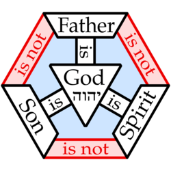The Trinity (Latin: Trinitas, lit. 'triad', from trinus 'threefold') is a Christian doctrine concerning the nature of God, which defines one God existing in three coeternal, consubstantial divine persons: God the Father, God the Son (Jesus Christ), and God the Holy Spirit, three distinct persons (hypostases) sharing one essence/substance/nature (homoousion).