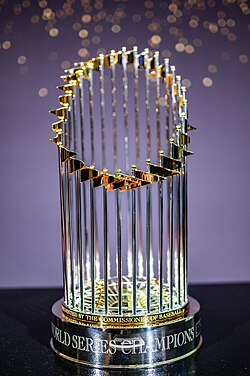 The World Series is an annual baseball championship in the US and Canada. It is the championship series of Major League Baseball (MLB); a professional baseball league in North America and has been contested since 1903 between the champion teams of the American League (AL) and the National League (NL). The winning team, determined through a best-of-seven playoff (except in 1903 and from 1919–1921, when a best-of-nine format was used), is awarded the Commissioner's Trophy.